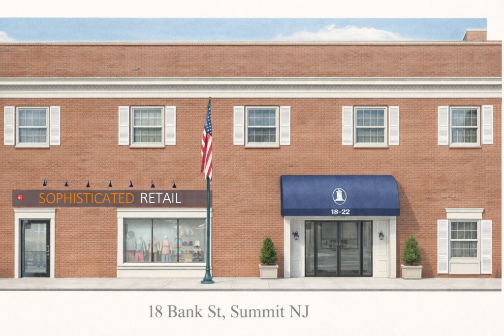 Located in the heart of downtown Summit, 18 Bank Street sits just one block from the Midtown Direct train to New York City. The surrounding area offers established retail, dining, and daily foot traffic, creating steady visibility throughout the day.