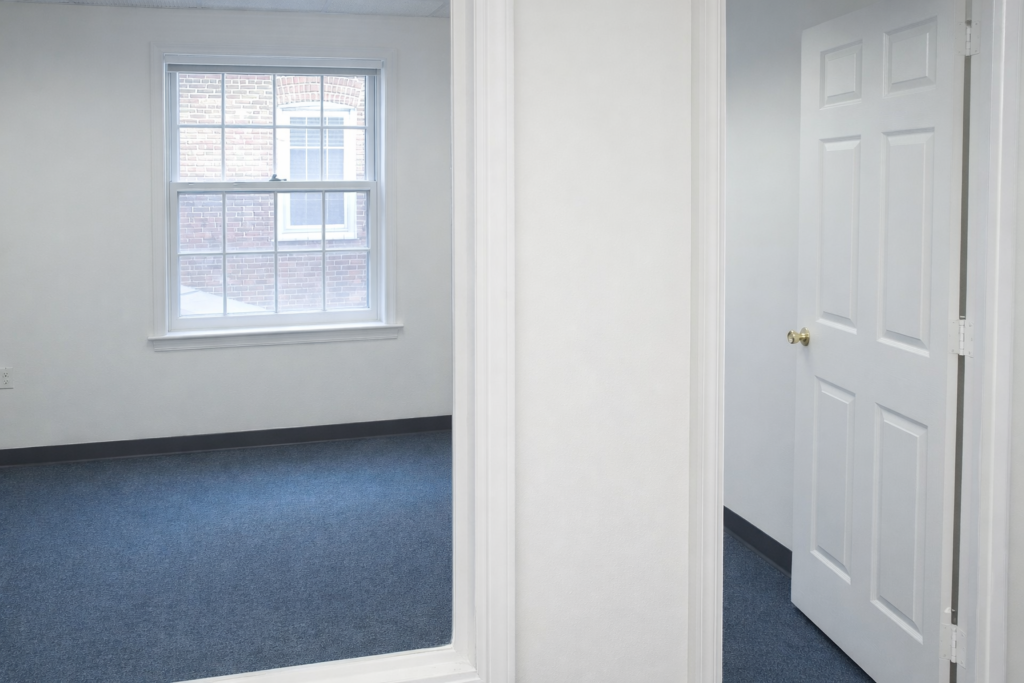 Office 4 or Conference Room. Versatile interior office suitable for use as a private workspace or conference room, featuring generous built-in storage closets for supplies and equipment – Suite 206